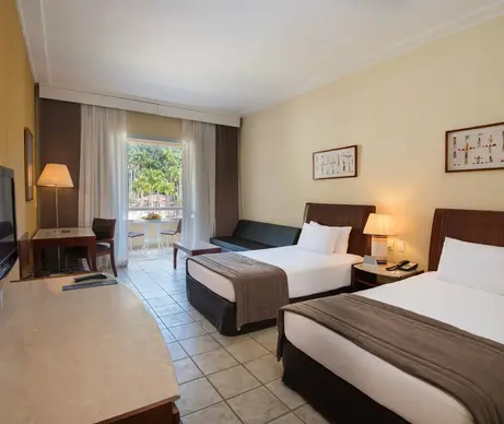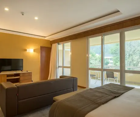 O Vila Galé Eco Resort de Angra conta com 321 acomodações confortáveis, incluindo 8 suítes e 4 suítes superiores especialmente projetadas para quem busca mais espaço e exclusividade. Todos os quartos possuem varanda privativa e oferecem belas vistas para o mar, para a piscina ou para a exuberante Mata Atlântica.